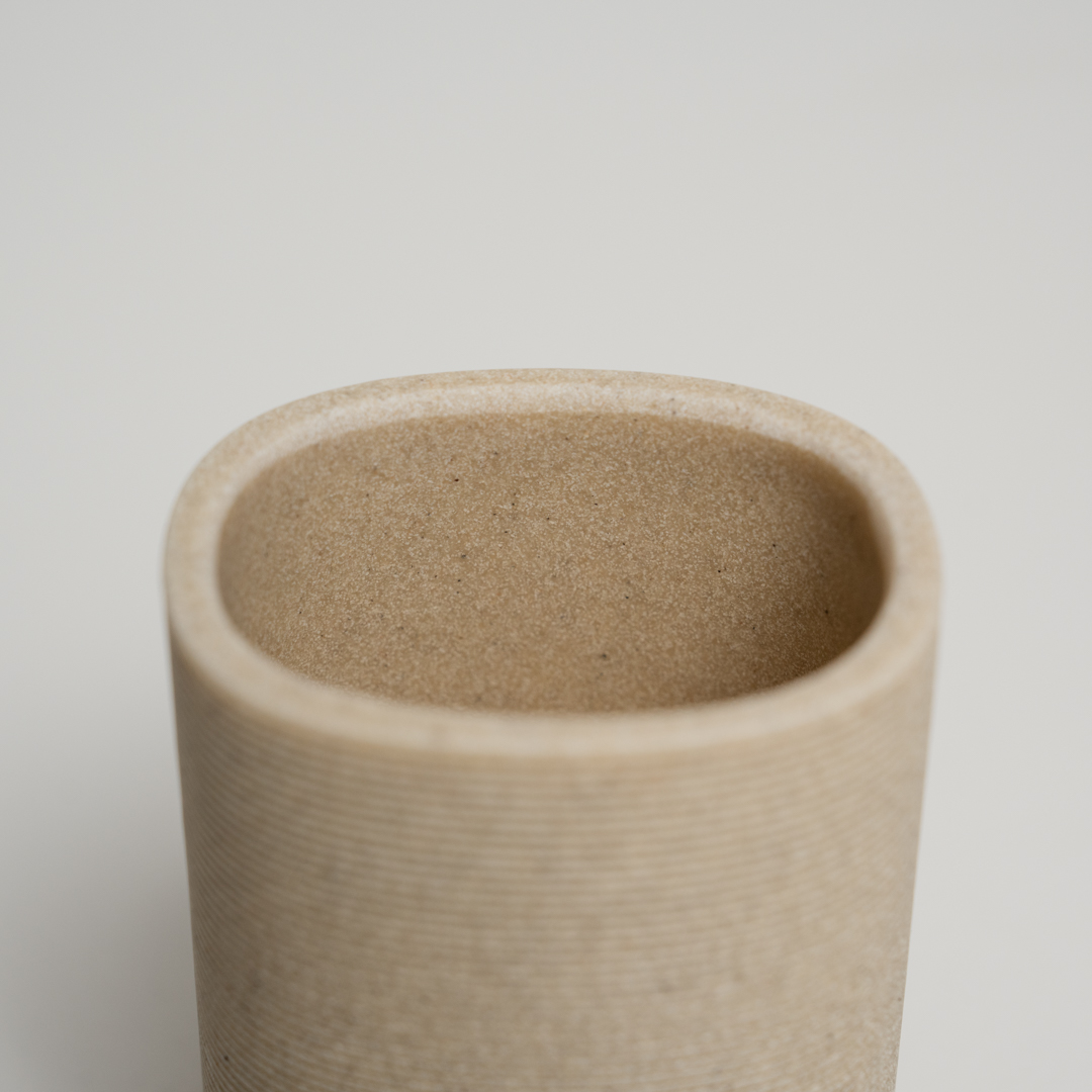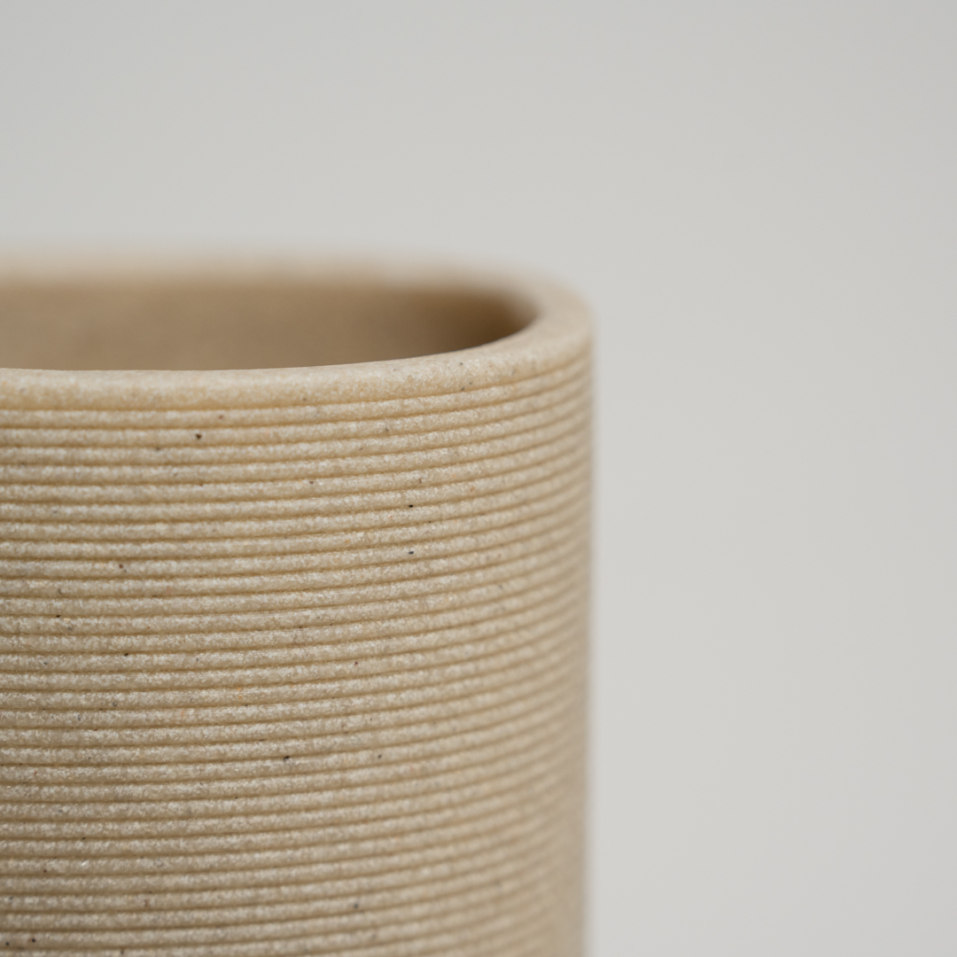 كوب من البوليريسين بلون بيج أنيق وعصري، متين وسهل التنظيف، مثالي لحفظ فرش الأسنان أو الأدوات الصغيرة. من بيتي الصغير.