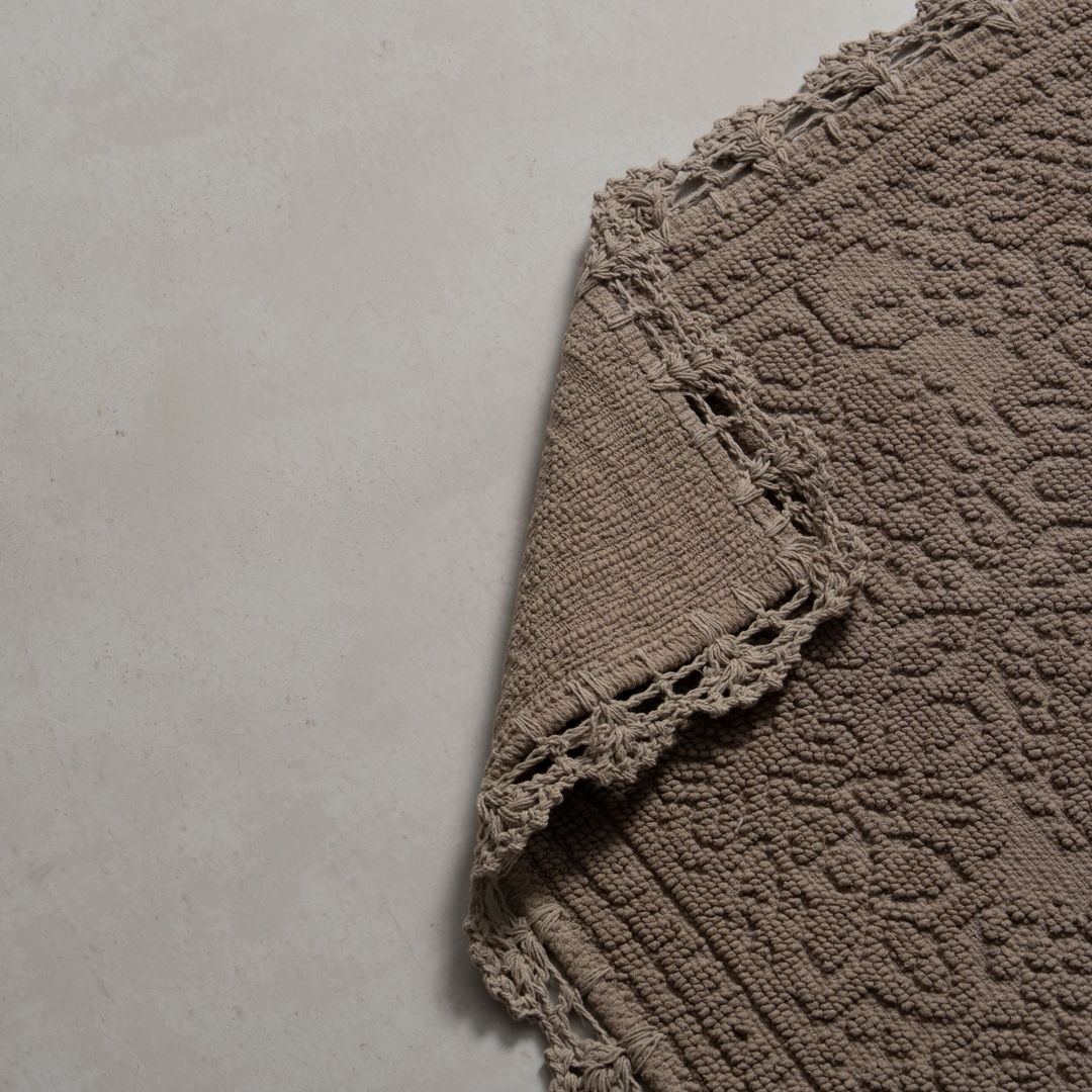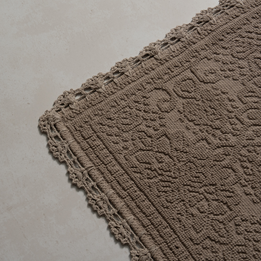 دعّاسة حمام فاخرة بمقاس مختلفة، مصنوعة من قطن 100% بخفة ومظهر راقٍ. لونها بني، أنيق ويضيف دفئًا هادئًا للحمام، مع تصميم مخيطة الحواف لمظهر مرتب. خيار عملي ومتناسق لأي حمّام منزلي.