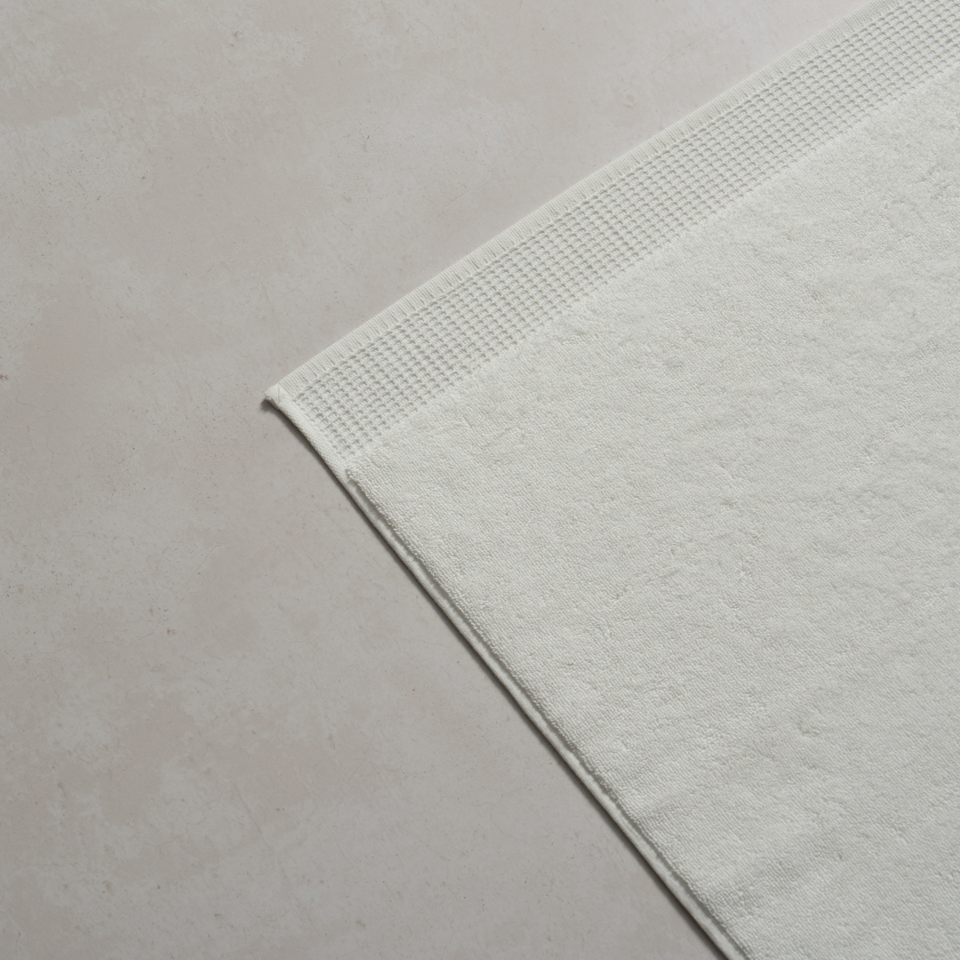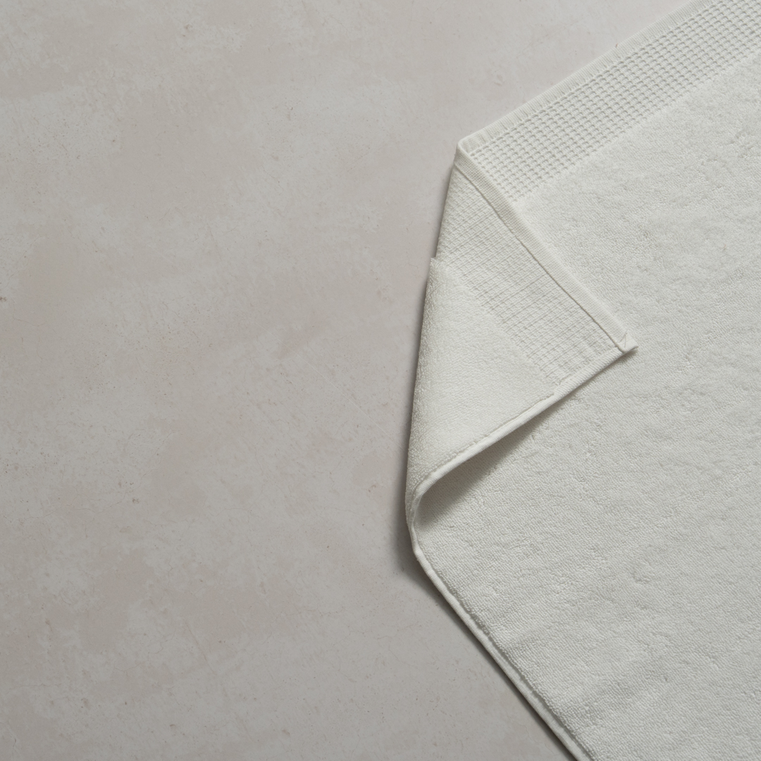 دعّاسة بيتي الصغير القطنية – بيضاء، مصنوعة من قطن ناعم وامتصاص فوري. آمنة، سهلة التنظيف، ومضادة للانزلاق… مثالية لكل حمام!