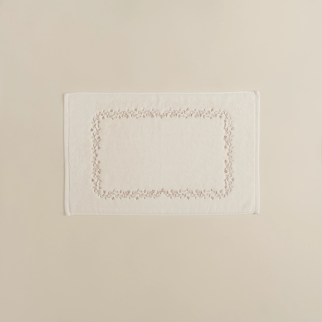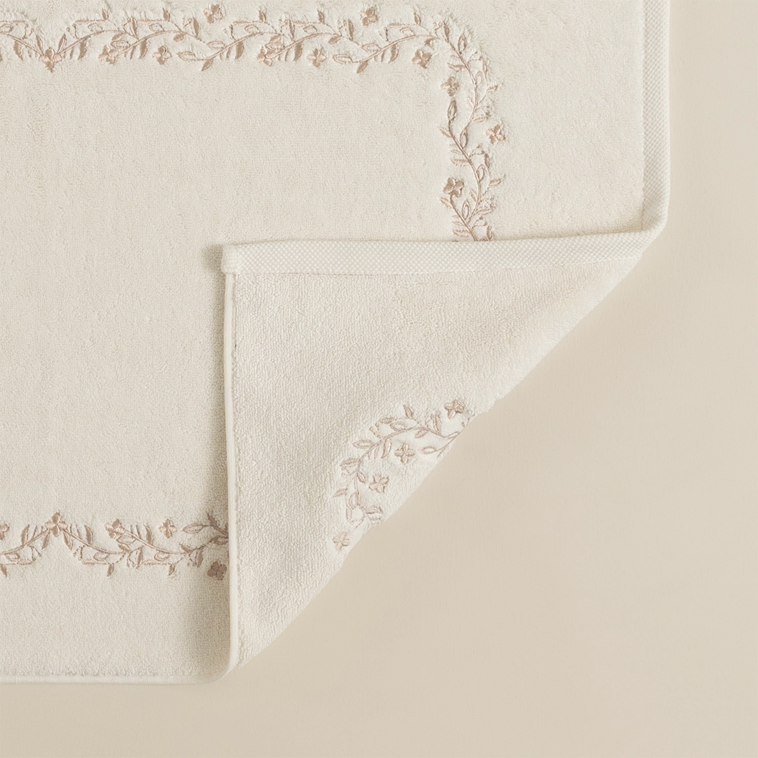 دعاسة حمام قطنية مطرزة باللون البيج الغامق. أناقة، أمان، وجفاف سريع لراحة تدوم طويلاً.