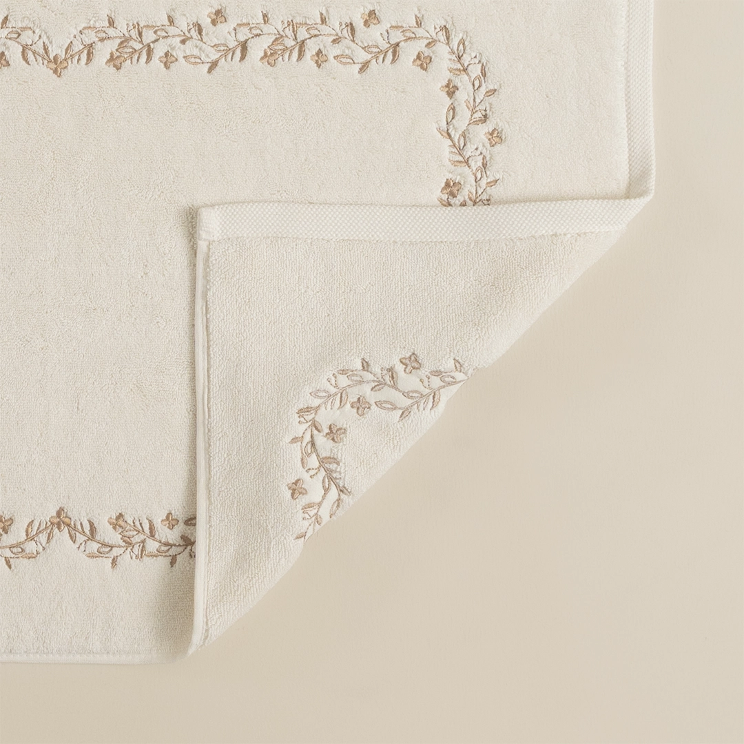 تصميمها الراقي وتطريزها المتقن يمنحان أرضية الحمام مظهرًا أنيقًا ومريحًا في الوقت نفسه، بينما توفر خامتها القطنية الناعمة إحساسًا دافئًا ومريحًا تحت القدمين بعد كل استحمام.