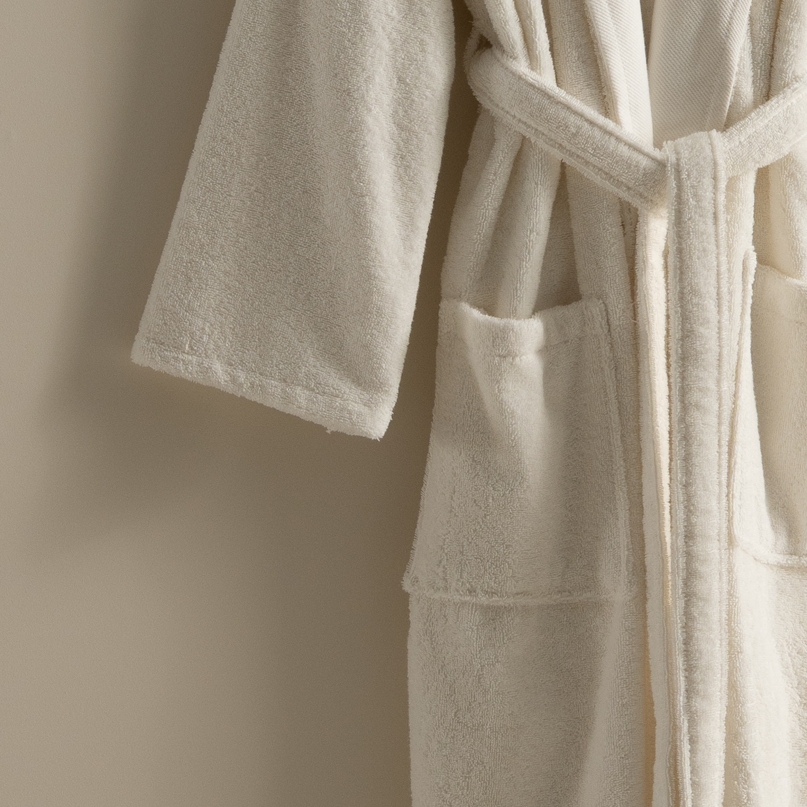 مصنوع من قطن 100% ناعم وعالي الامتصاص، بتصميم لف عملي مع حزام خصر وجيوب جانبية.