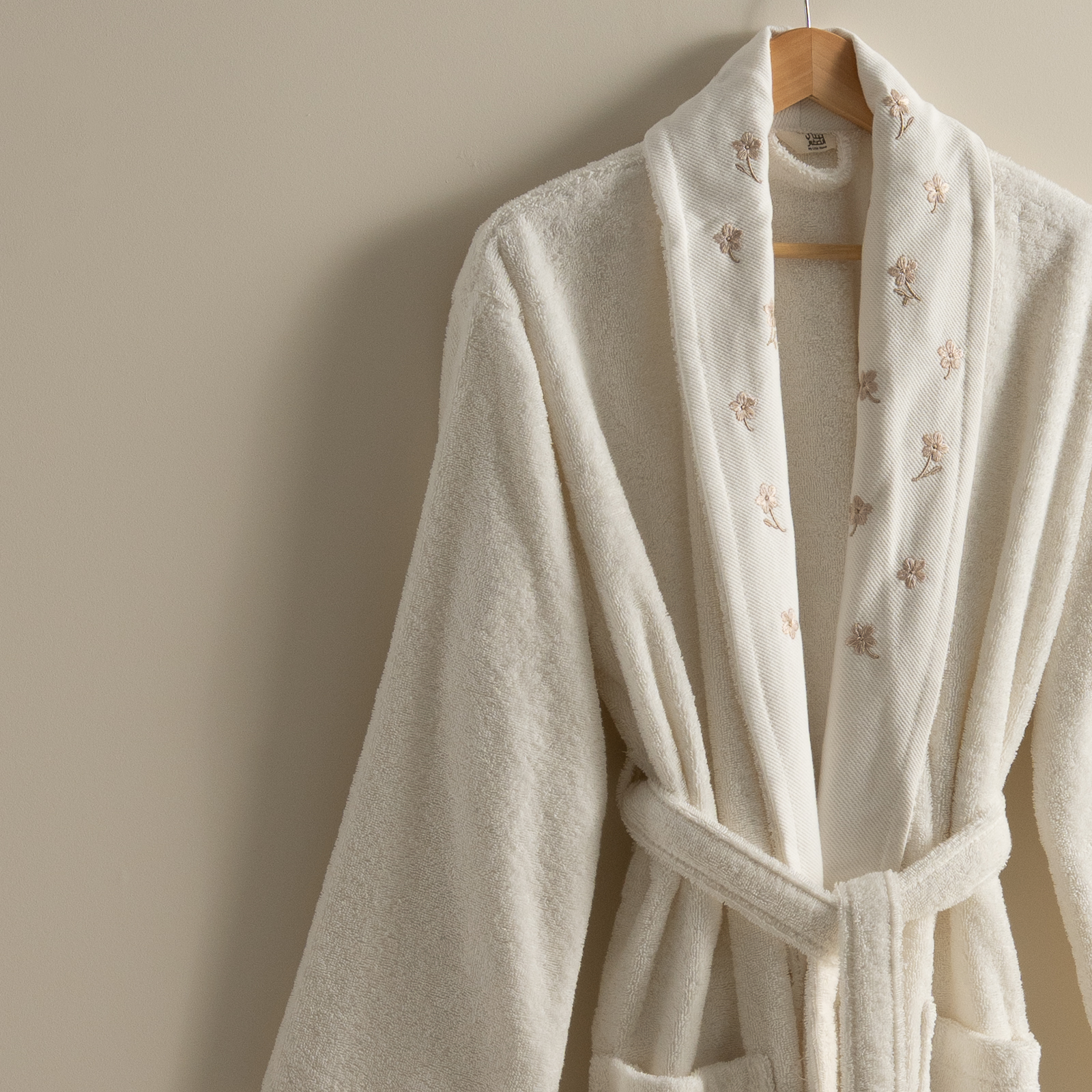 روب حمام قطن مطرز أوف وايت بعدة مقاسات