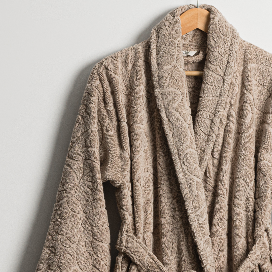 روّب حمام بني مصنوع من قطن سميك عالي الجودة، ملمس فاخر وامتصاص ممتاز