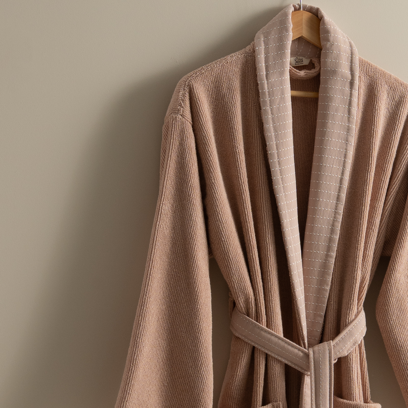مصنوع من قطن 100% ناعم وعالي الامتصاص، بتصميم لف عملي مع حزام وجيوب جانبية.