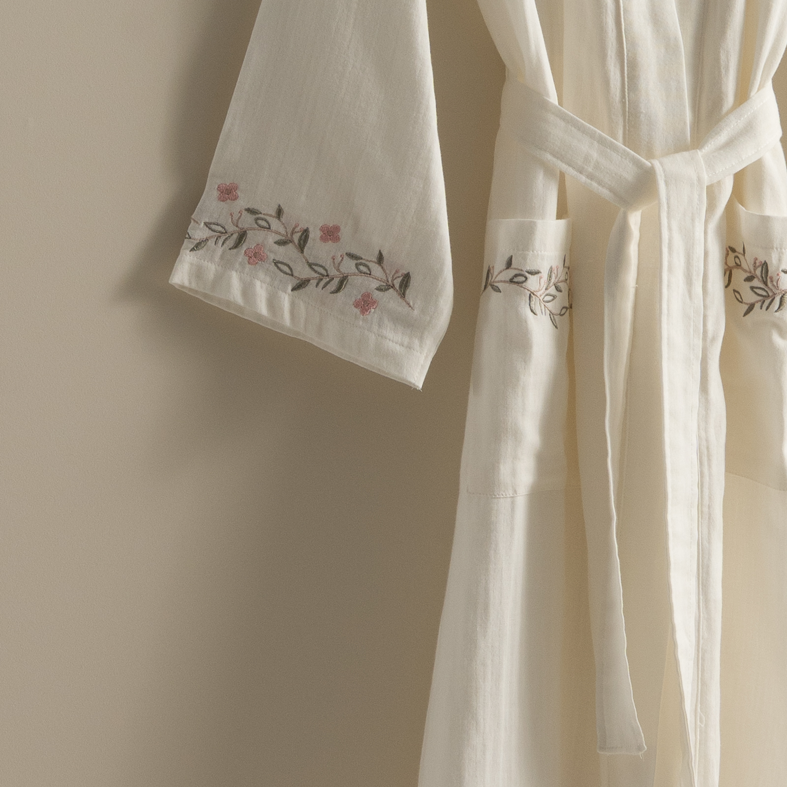 مصنوع من قطن 100% ناعم وعالي الامتصاص، بتصميم لف عملي مع حزام  وجيوب جانبية.