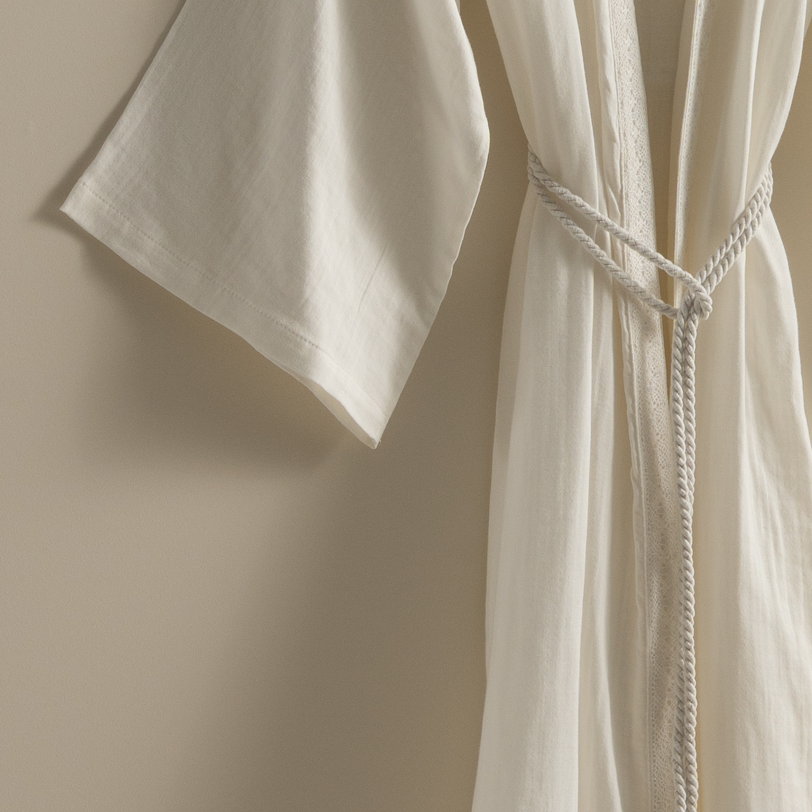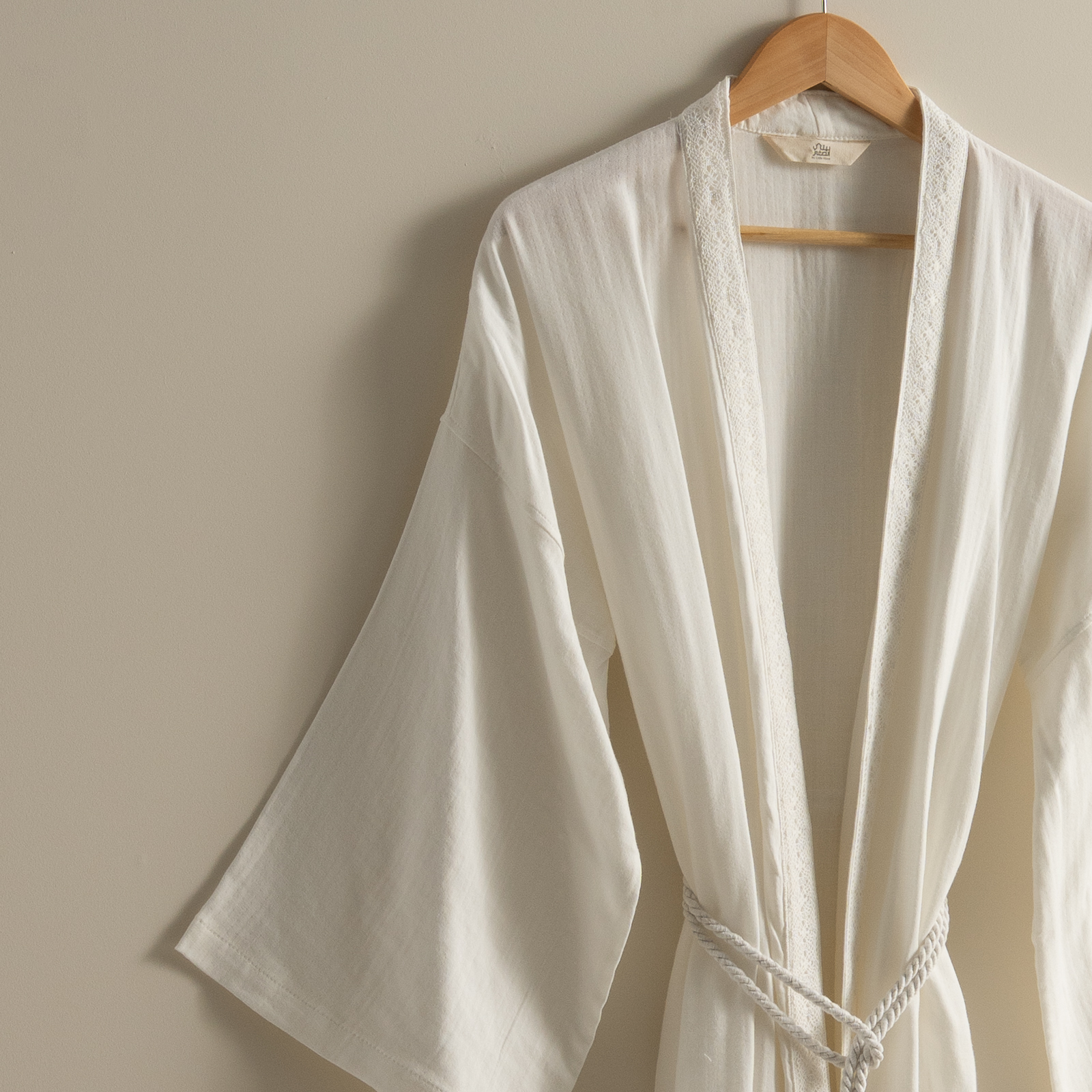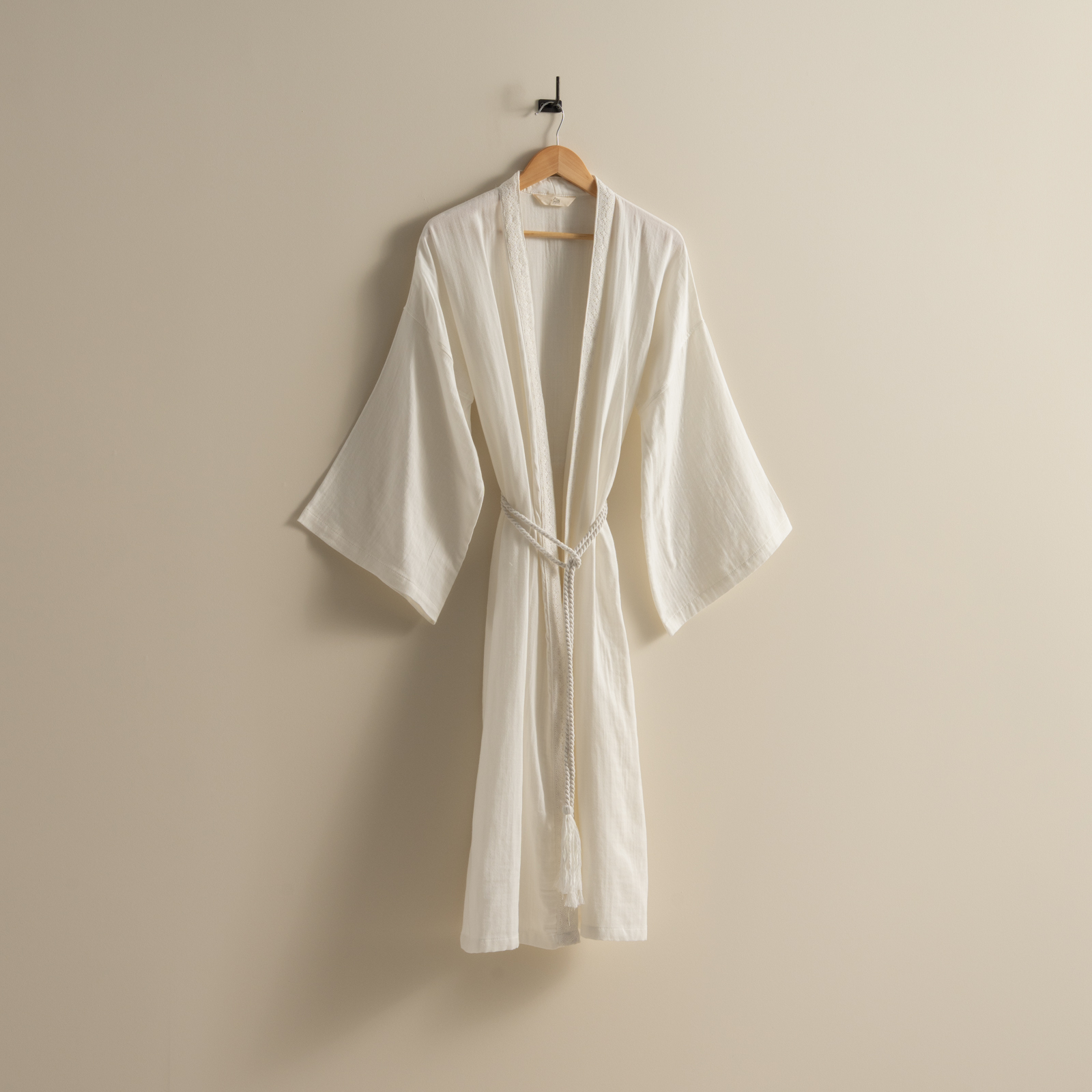 مصنوع من قطن 100% ناعم وعالي الامتصاص، بتصميم لف عملي مع حزام وجيوب جانبية.