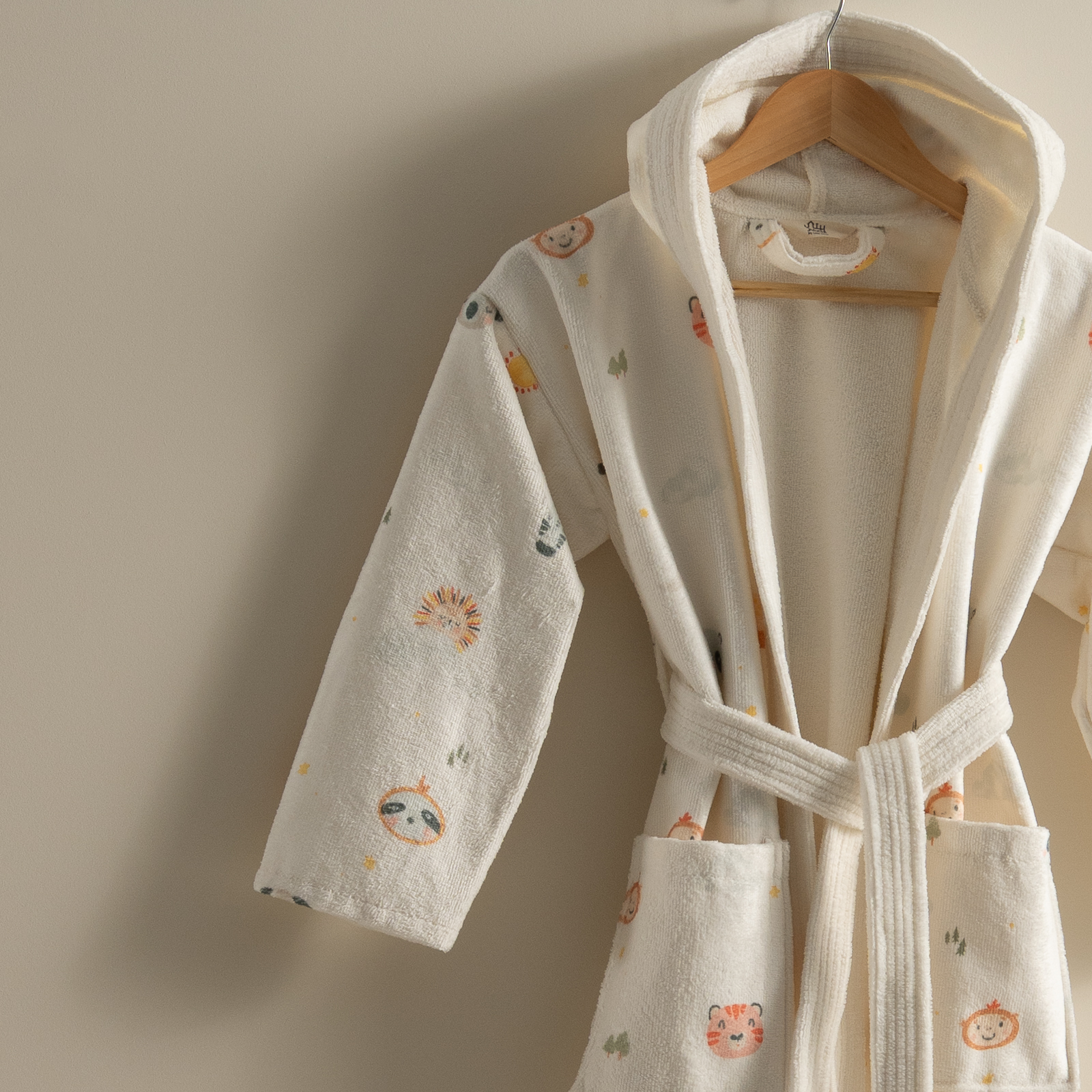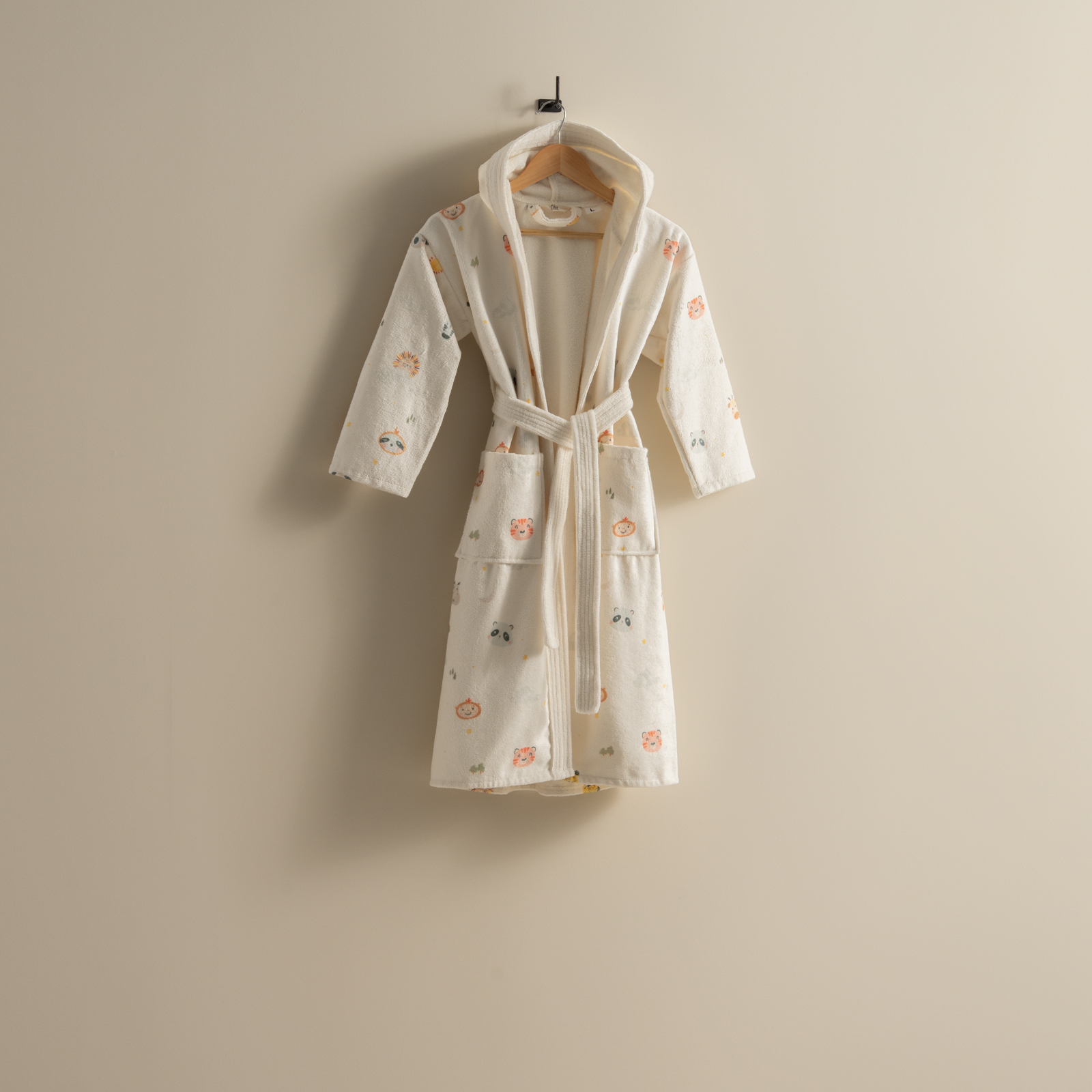 روب حمام أطفال قطن لون أوف وايت متعدد المقاسات