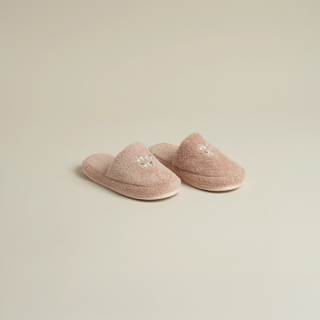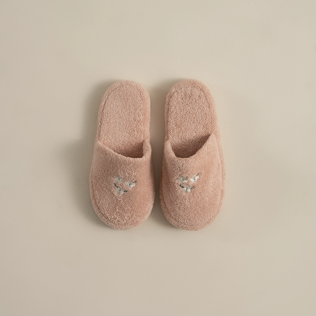 سليبر بـ جودة فندقية لكن بلمسة تطريز شخصية ذات تباين لوني أنيق، مما يجعله مثالياً للاستخدام اليومي أو لتقديم الضيافة.