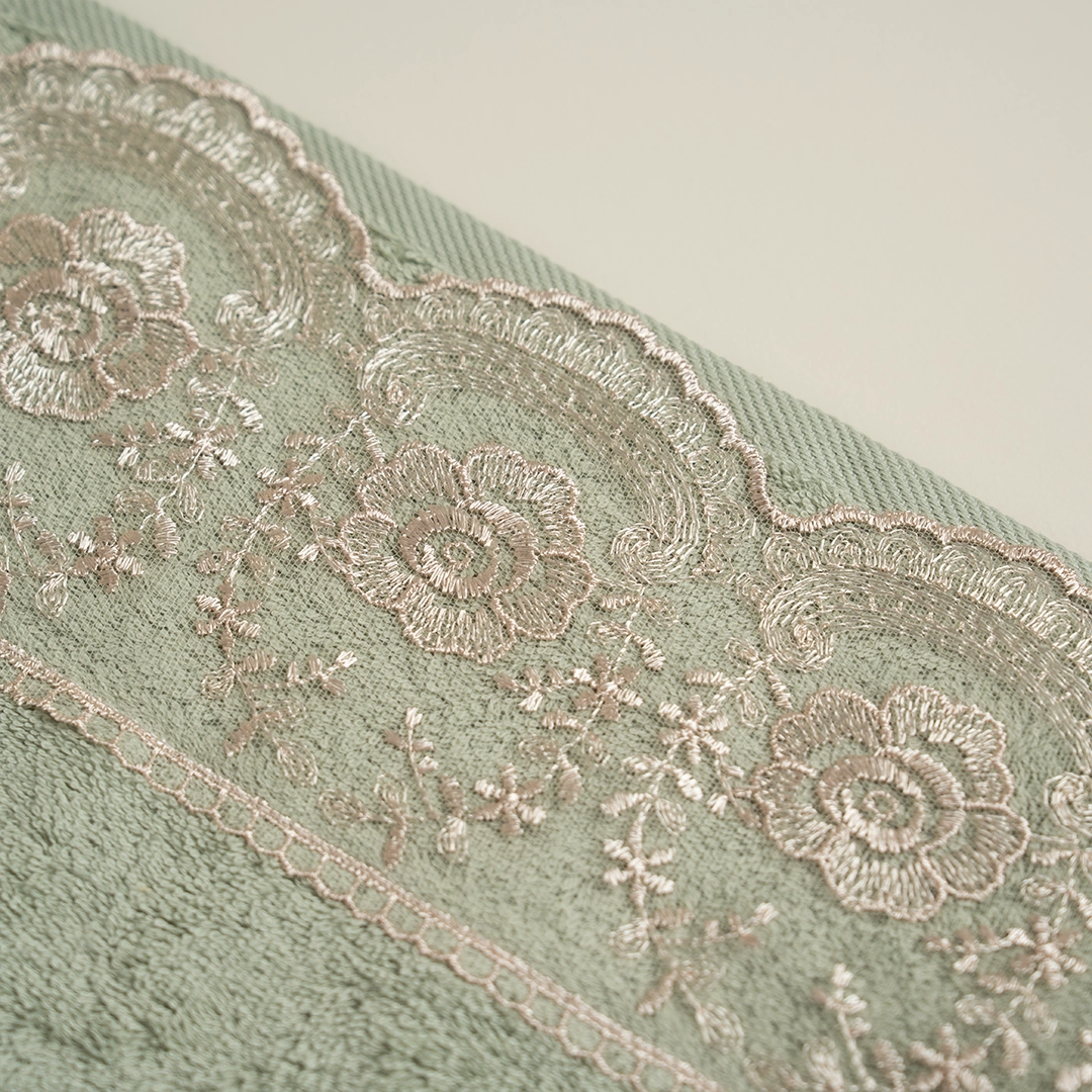 تتميز هذه المنشفة بـ تطريزها الأنيق ولمسة من الحرفية التي تليق بحمامك.