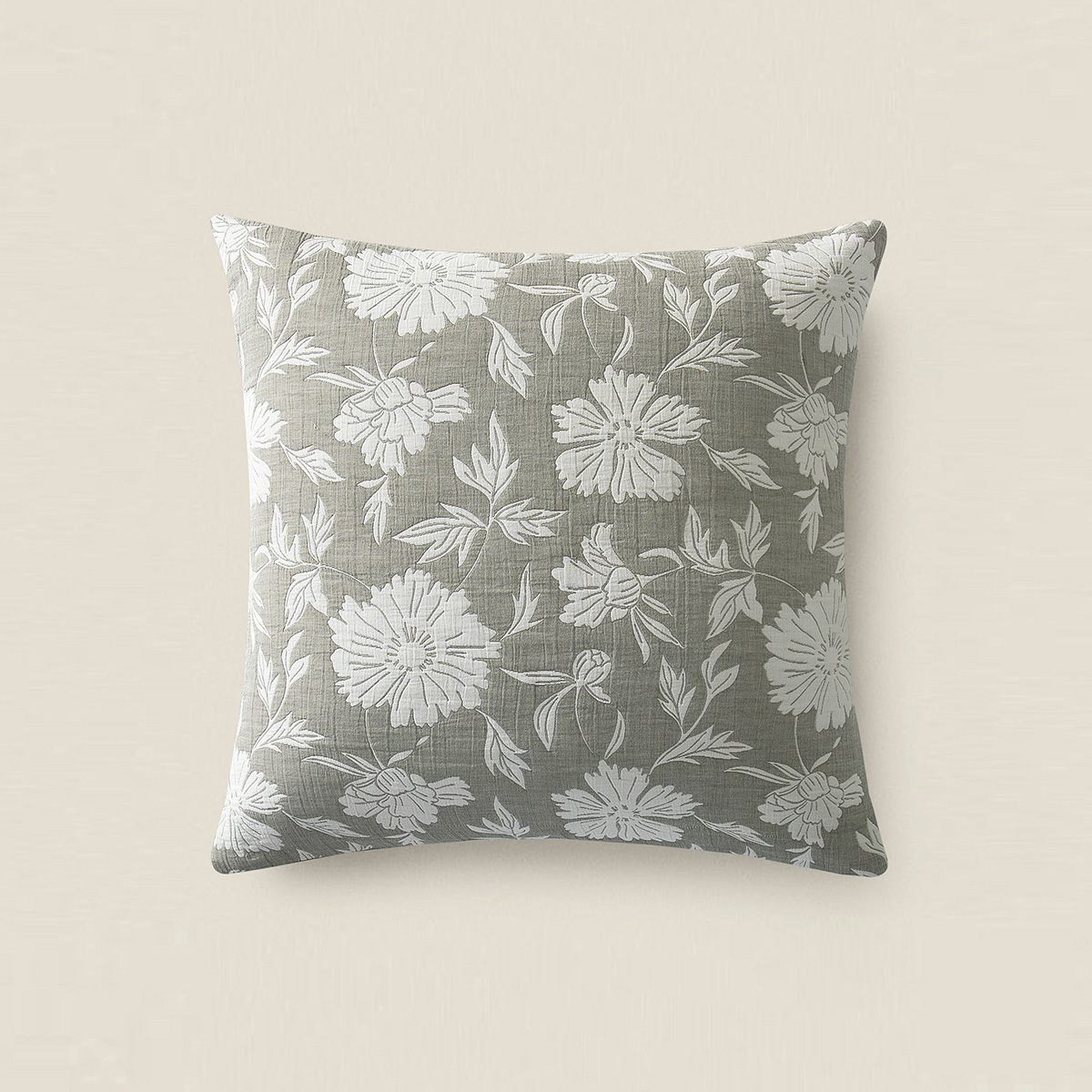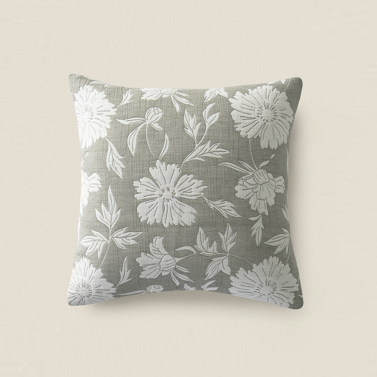 بيت تكاية فاخر من الجاكار المبطن بالقطن، مزين بورود بيضاء أنيقة، يجمع بين النعومة والفخامة، ليضفي لمسة راقية وجمالية على الكنب .من بيتي الصغير.