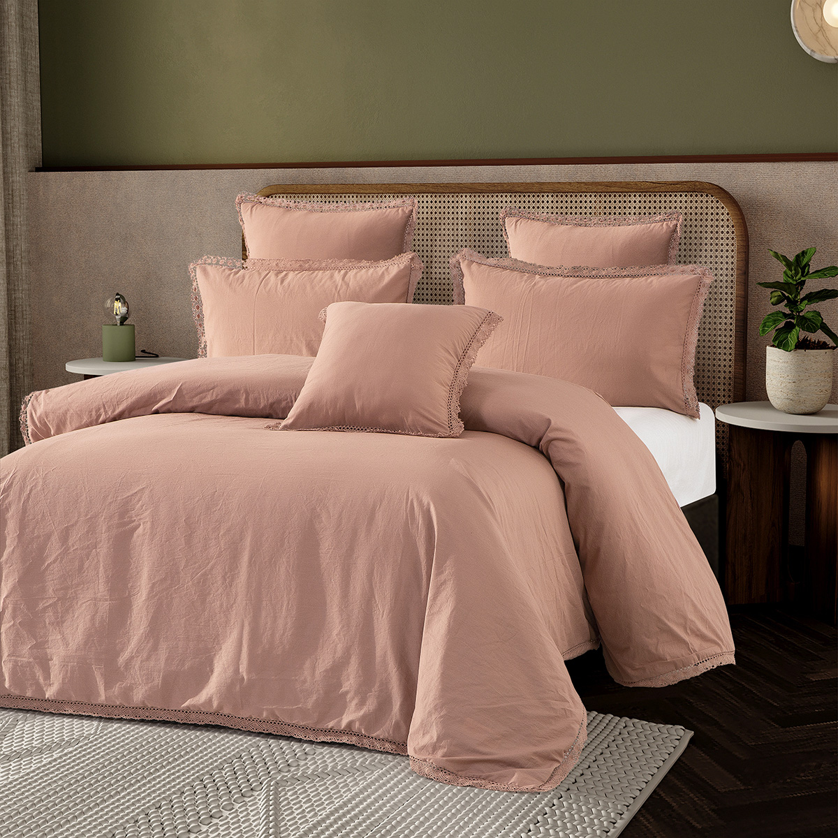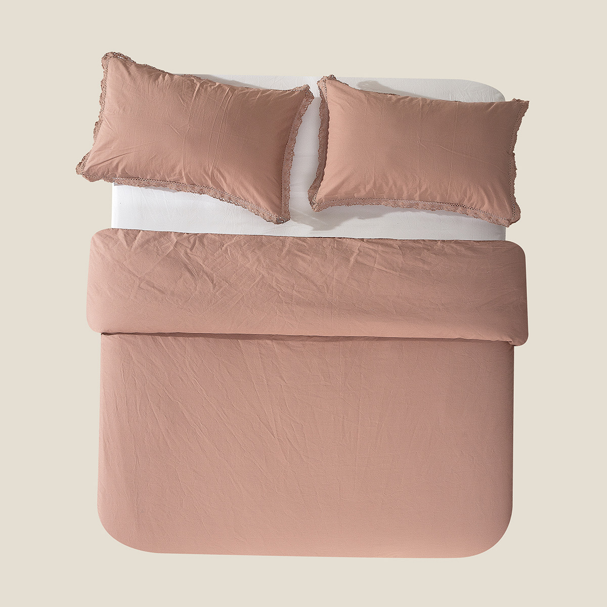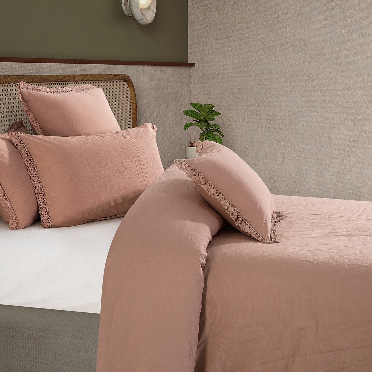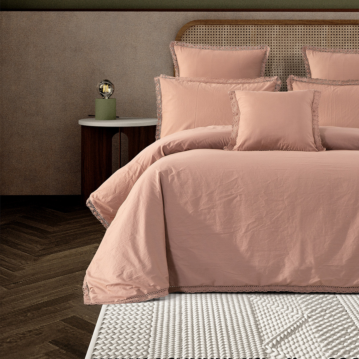لمسة من الفخامة والأنوثة مع بيت لحاف قطن بلون بينك داكن، بتصميم راقٍ مزين بدانتيل أنيق يضفي طابعًا كلاسيكيًا ناعمًا على ديكور سريرك.