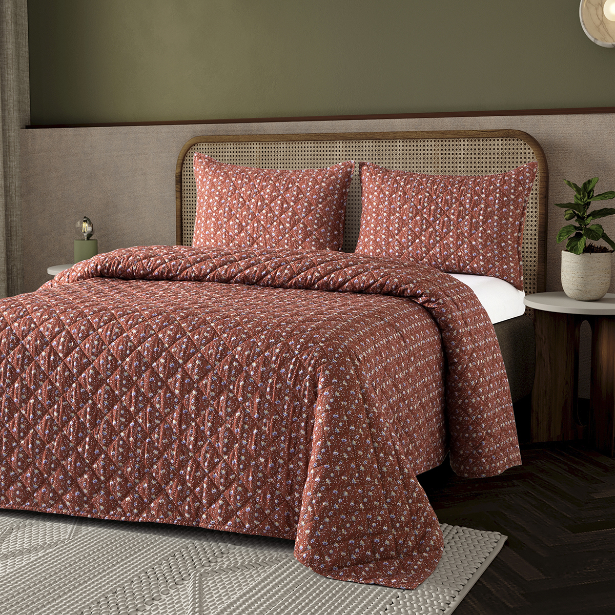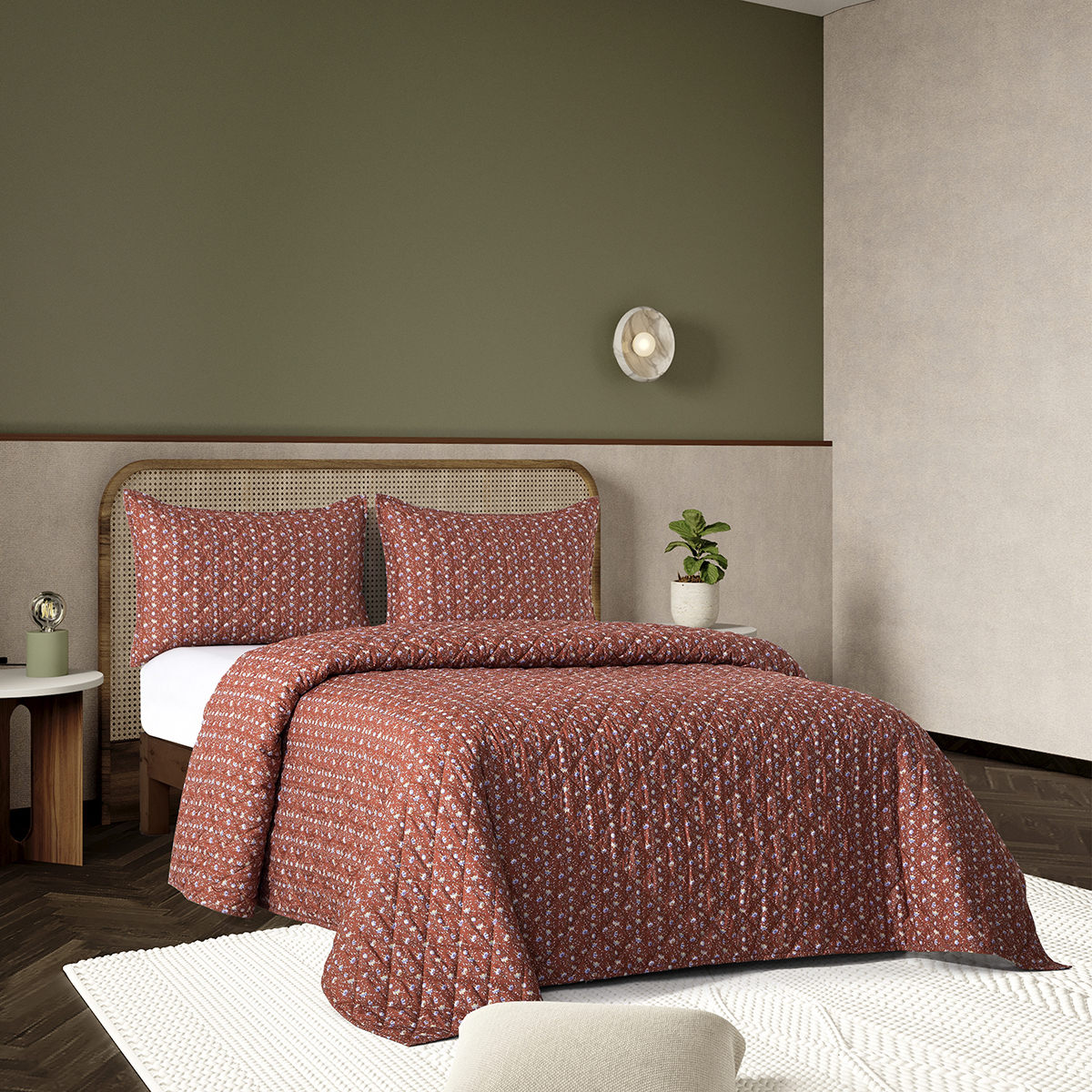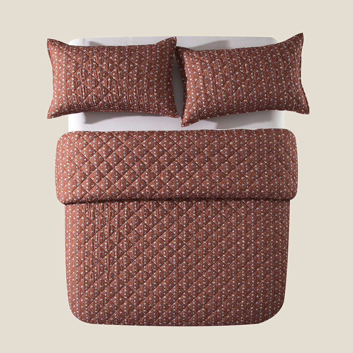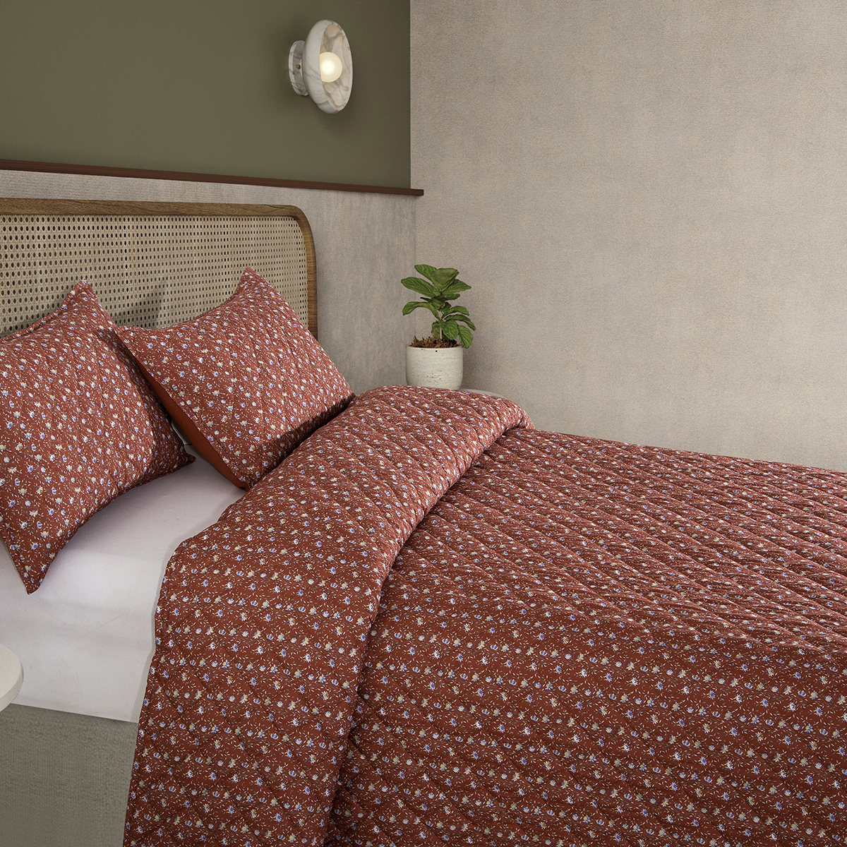 لحاف مضغوط بحشوة ثابتة، متوفر بمقاس مزدوج وكوين مكون من قطعة واحدة بلون طوبي من بيتي الصغير