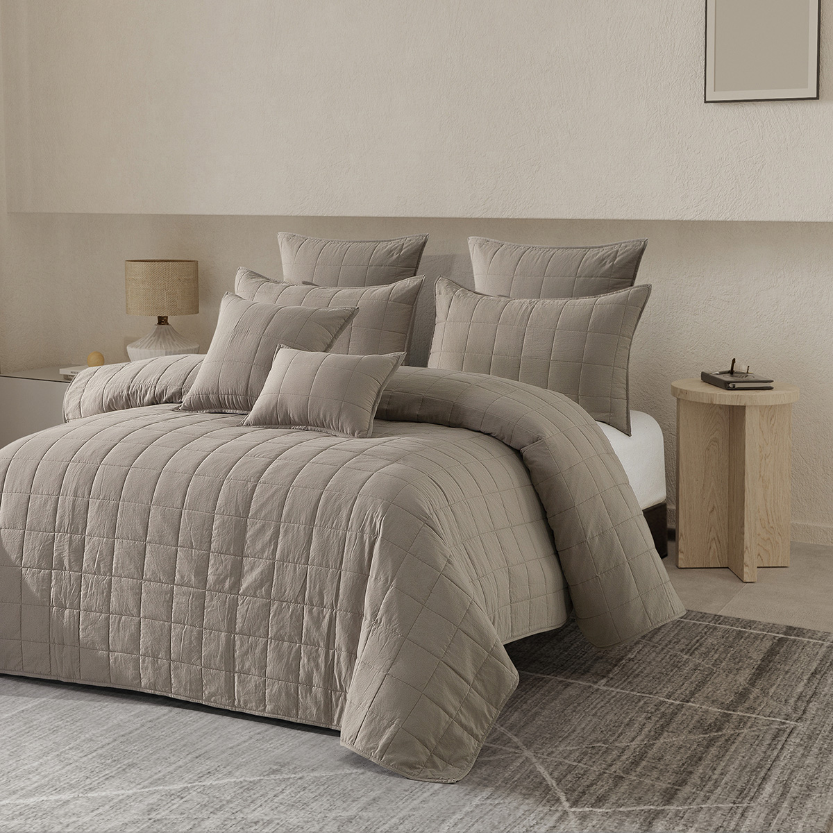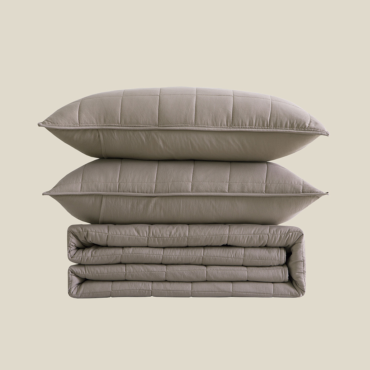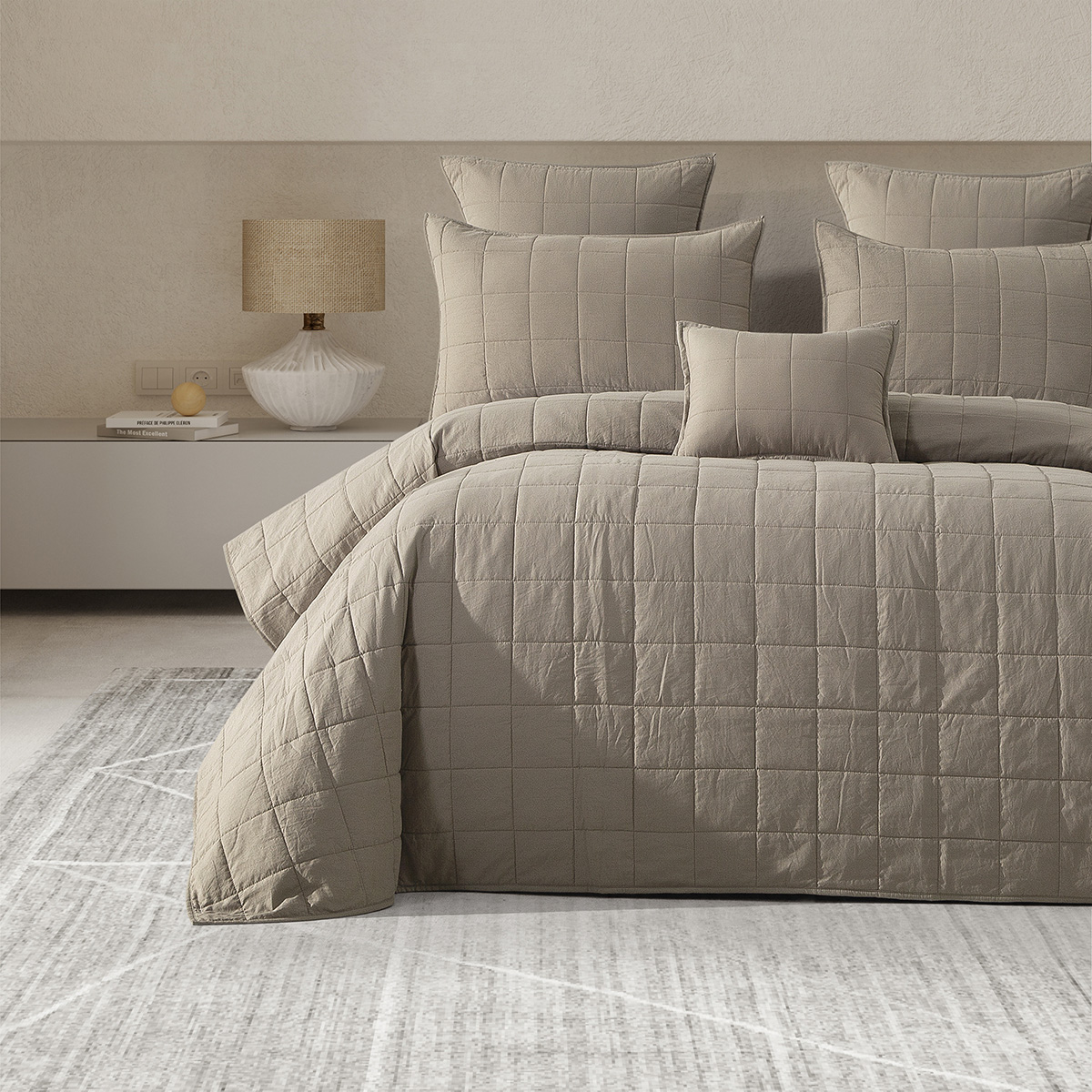 لحاف مضغوط بحشوة ثابتة، متوفر بمقاس مزدوج وكوين ومفرد مكون من قطعة واحدة بلون بني من بيتي الصغير