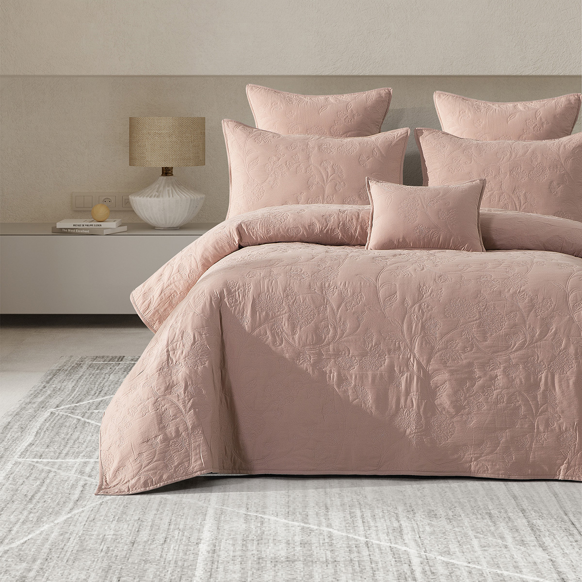 لحاف مضغوط مطرز بحشوة ثابتة، متوفر بمقاس مزدوج وكوين ومفرد مكون من قطعة واحدة بلون بينك من بيتي الصغير