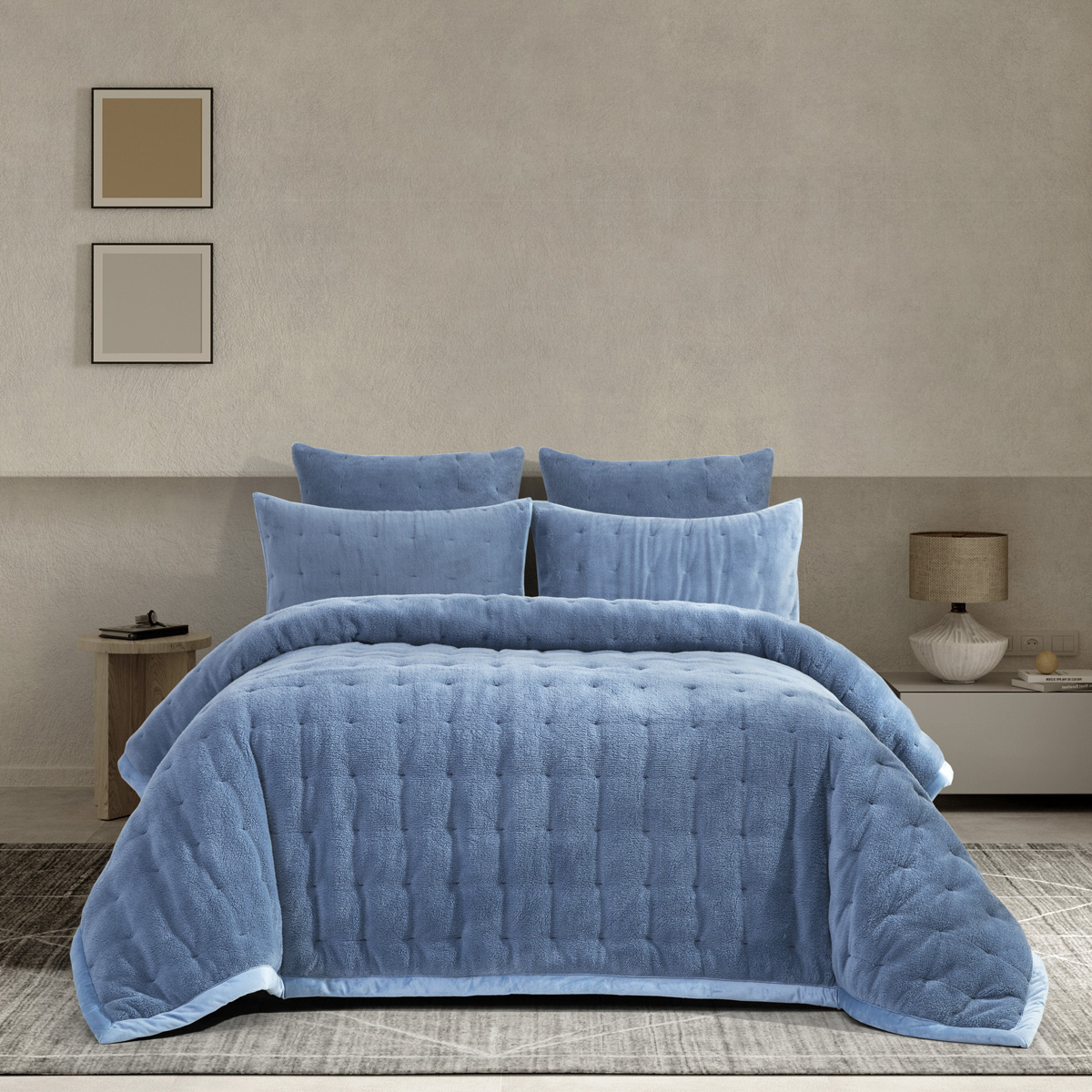 طقم لحاف شتوي مضغوط سادة يُعد رفيقًا مثاليًا للأيام الباردة والليالي الشتوية. يقدم الدفء والراحة الفائقة، مع ملمس ناعم ومريح يُسهم في إيجاد بيئة نوم مثالية. تصميمه المتين والأنيق يُضفي لمسة من الجمال على غرفة النوم، مما