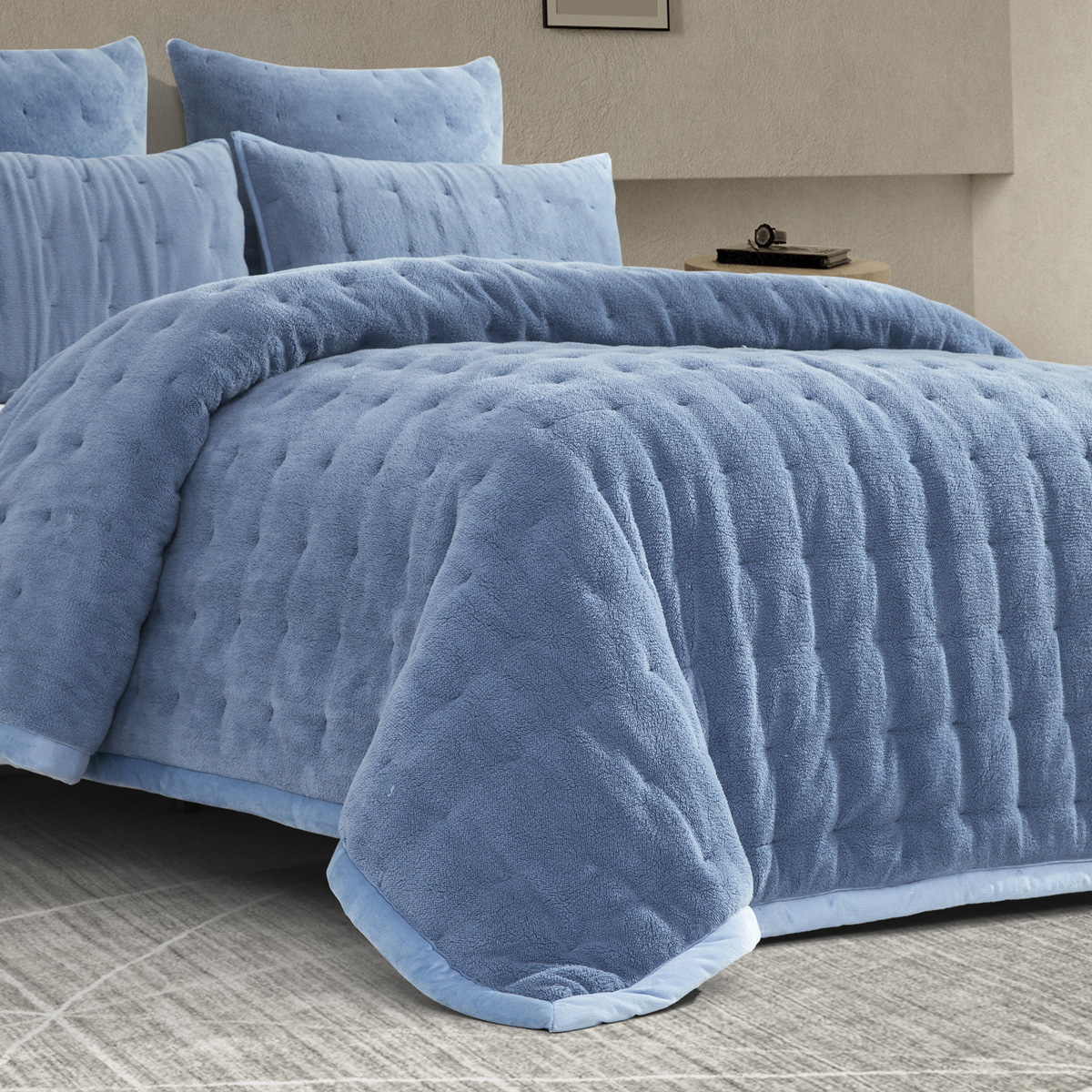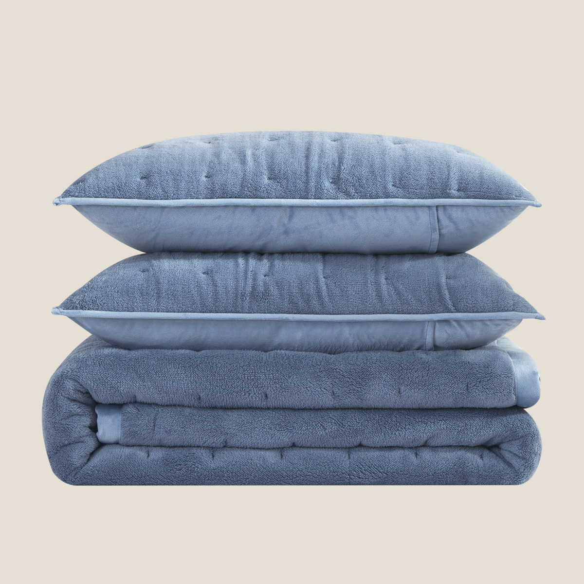 طقم لحاف شتوي مضغوط من البوليستر سيضفي الجمال والراحة على سرير نومك، يسمح بالتهوية لخفة وزنه، يحافظ على جودته ولونه مع الغسيل المتكرر، بحشوة مضغوطه نحيفه ليسهل تخزينه، متوفر باللون الأزرق، بمقاس مفرد مكون من قطعتين، وكوين 3 قطع ومزدوج مكون من 3 قطع من بيتي الصغير