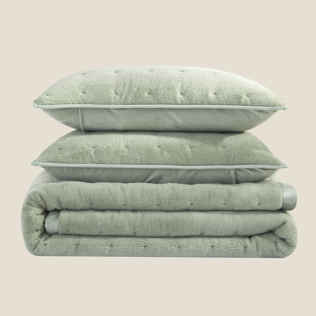 طقم لحاف شتوي مضغوط من البوليستر سيضفي الجمال والراحة على سرير نومك، يسمح بالتهوية لخفة وزنه، يحافظ على جودته ولونه مع الغسيل المتكرر، بحشوة مضغوطه نحيفه ليسهل تخزينه، متوفر باللون الاخضر، بمقاس مفرد مكون من قطعتين، وكوين 3 قطع ومزدوج مكون من 3 قطع من بيتي الصغير