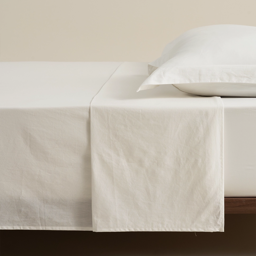 حوّل سريرك إلى واحة من الهدوء والجمال مع شرشف السرير هذا المصنوع بعناية فائقة من القطن الطبيعي 100%. يتميز بملمسه الناعم والمريح الذي يلامس بشرتك بلطف، وبتصميمه السادة الذي يضفي لمسة من النقاء والأناقة الهادئة على غرفتك بلونه الأوف وايت المشرق، مما يوفر لك بيئة مثالية للاسترخاء والنوم العميق.