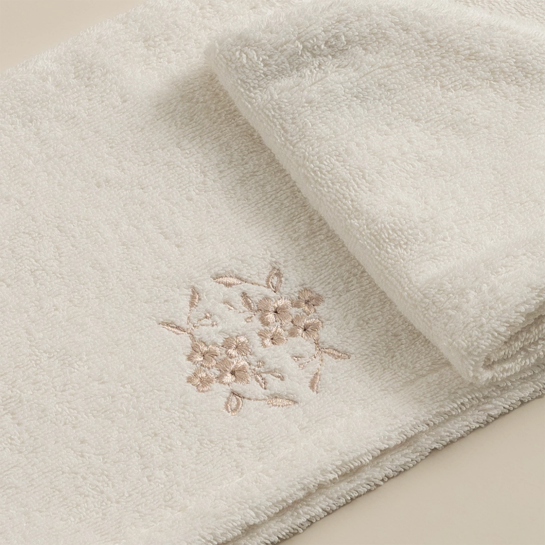 منشفة رأس قطن مطرز بيج غامق