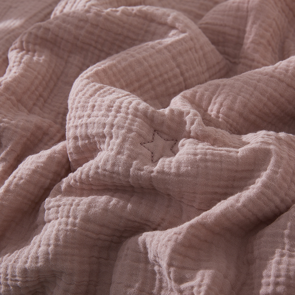 نعومة وأنوثة من اللحظة الأولى مع طقم اللحاف القطني باللون الروز، الذي يجمع بين الأناقة والراحة في تصميم هادئ يناسب روح البدايات.