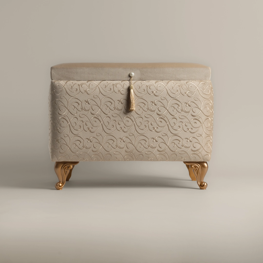 بتصميم مخملي فاخر صندوق سجاد صلاة مطرز بتطريز ناعم يرتب سجاداتك ويحفظها من الغبار والأوساخ يضفي لمسة مميزة على مجلسك، مزين بورود أنيقة بأربعة أرجل، من بيتي الصغير.